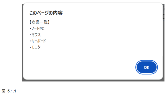 8 行目から 10 行目で、forEach を使って配列の全要素を順番に取り出し、1 件ずつ message に追記しています。コールバック関数の引数 product には、「ノート PC」「マウス」…と順番に 1 件ずつの値が渡されます。