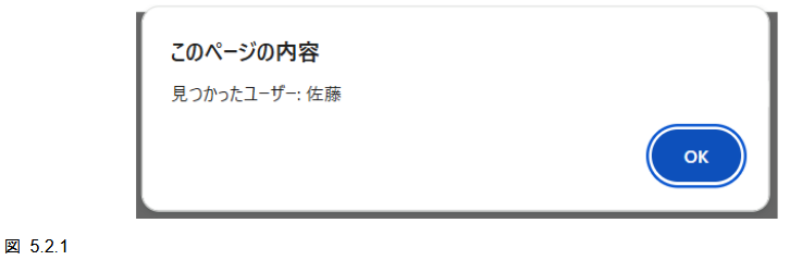 alert("見つかったユーザー: " + user.name); // 佐藤