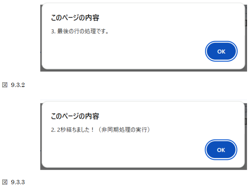 alert("2. 2秒経ちました!(非同期処理の実行)");